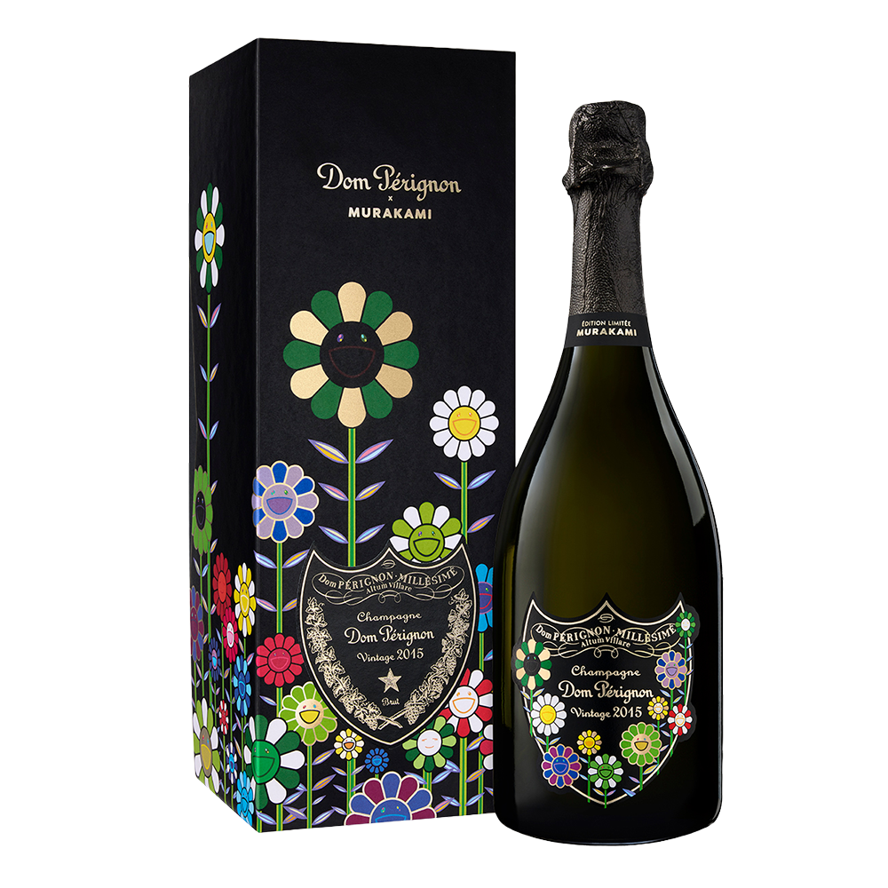 Dom Pérignon s'est associé à Takashi Murakami pour la création de deux éditions limitées, à l'occasion des fêtes de fin d'année 2025 : une pour Dom Pérignon Vintage 2015 et une pour le lancement de Dom Pérignon Rosé Vintage 2010. Cette collaboration perpétue le dialogue créatif de la Maison avec des artistes visionnaires et réaffirme son engagement dans l'exploration artistique.